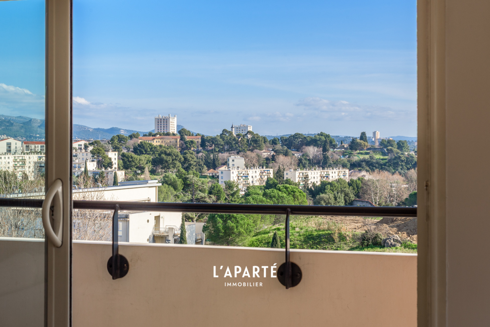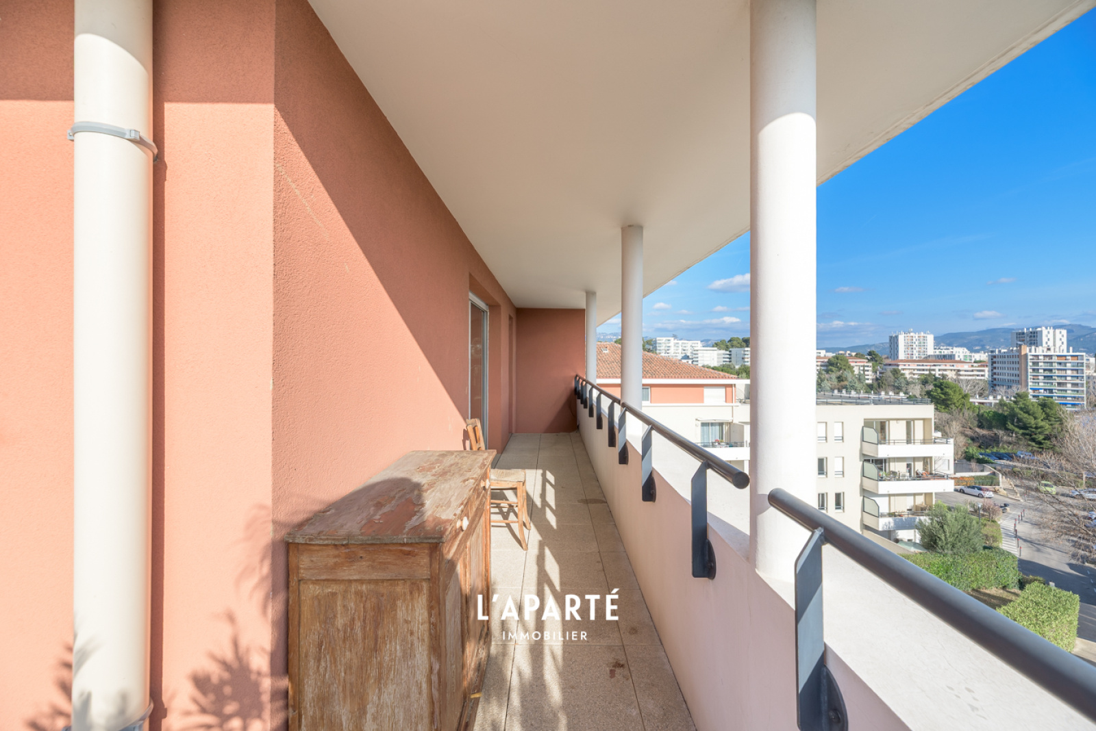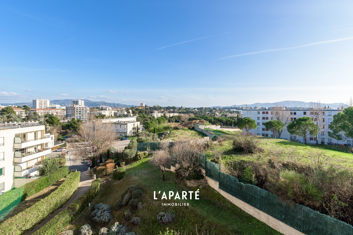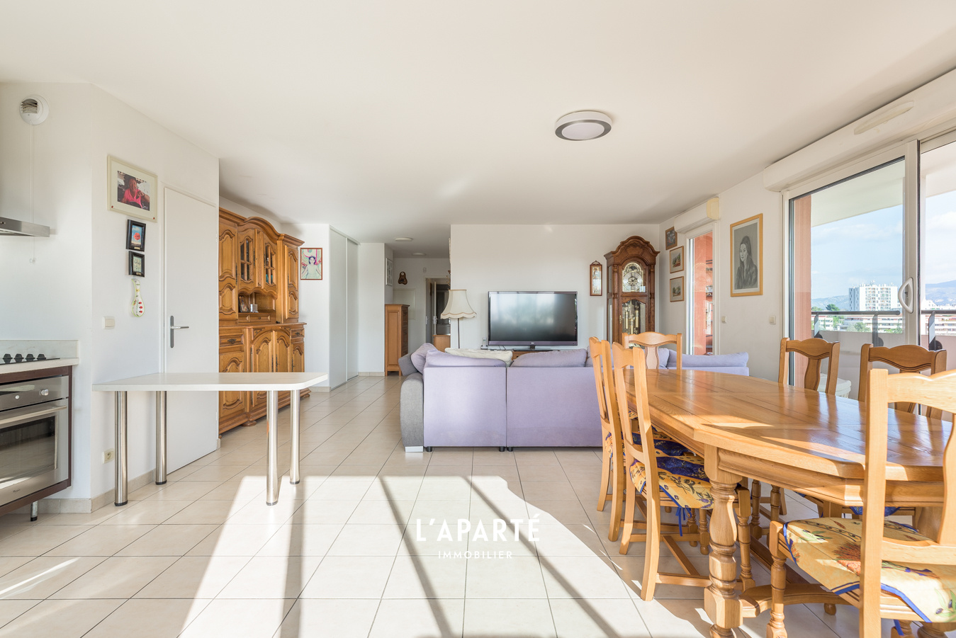 L'aparté vous invite aujourd'hui à découvrir cet appartement T4 de 90m² avec terrasse de 40m2, situé au 4ème et dernier étage d'un immeuble récent, Quartier Saint Mitre.
